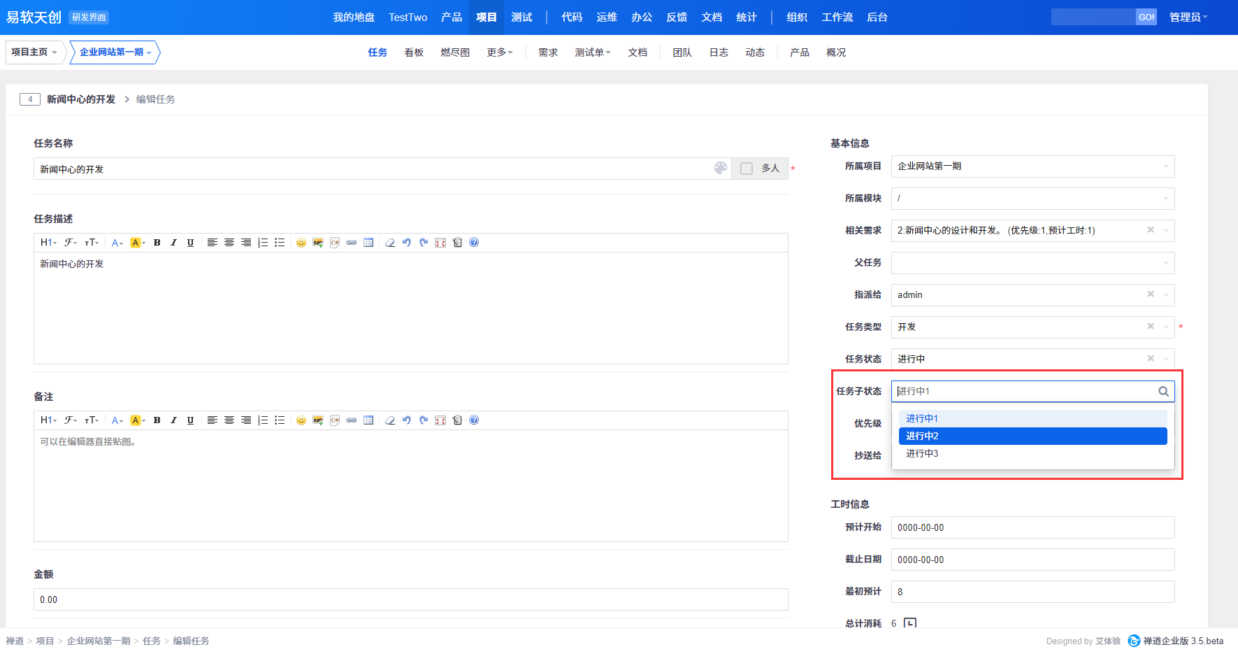 禅道企业版3.5.beta版本发布,完善工作流功能,增加子状态。