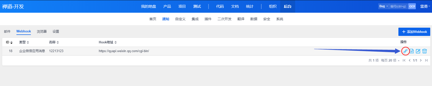 ▽ Webhook 将禅道用户与企业微信绑定页面: